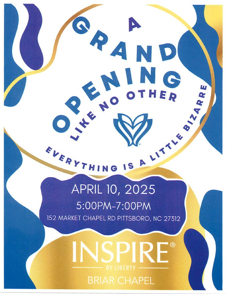 Join the Chatham Chamber as we celebrate the Grand Opening of Inspire Briar Chapel, a dynamic 55+ active adult community in Pittsboro.